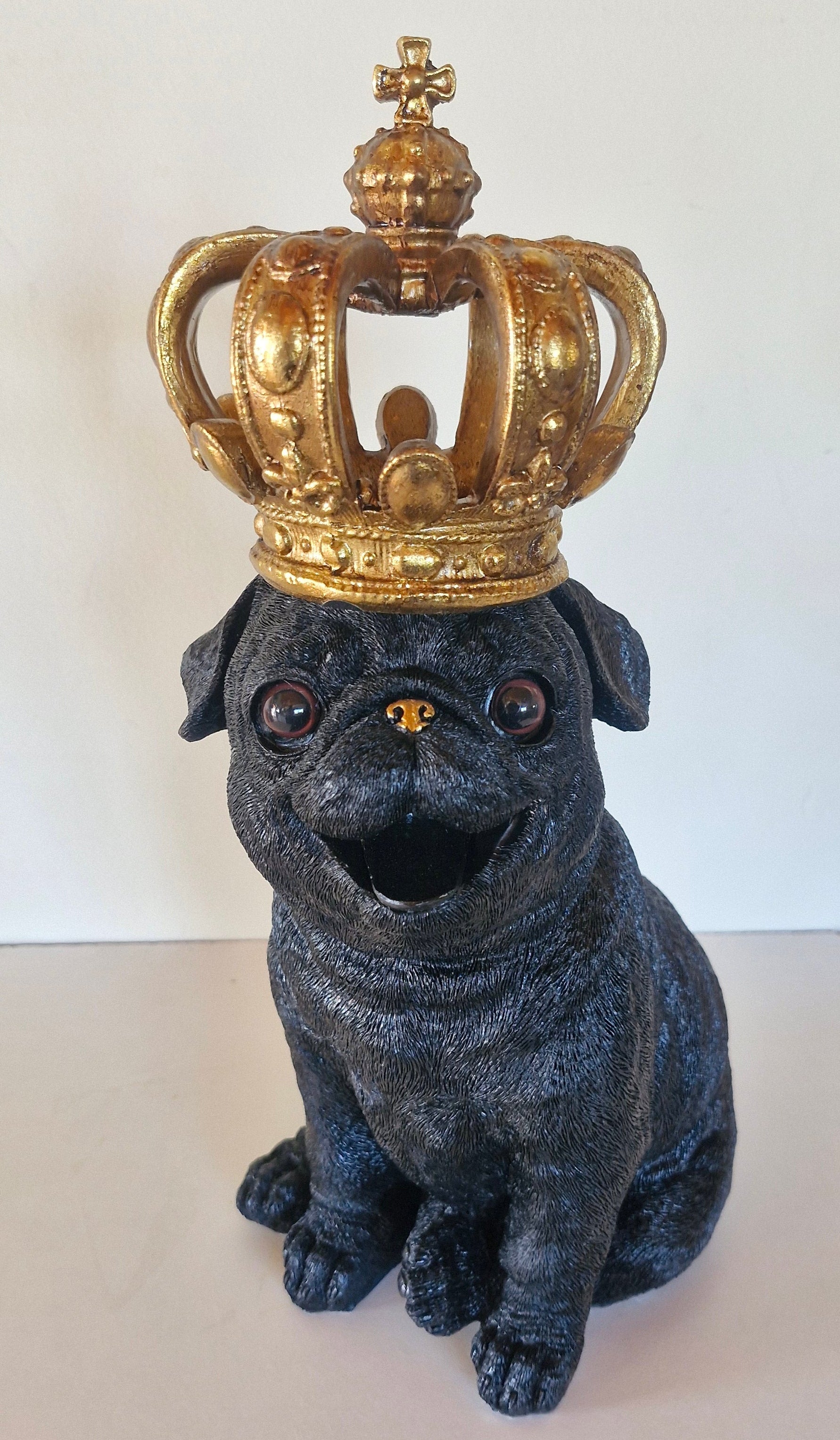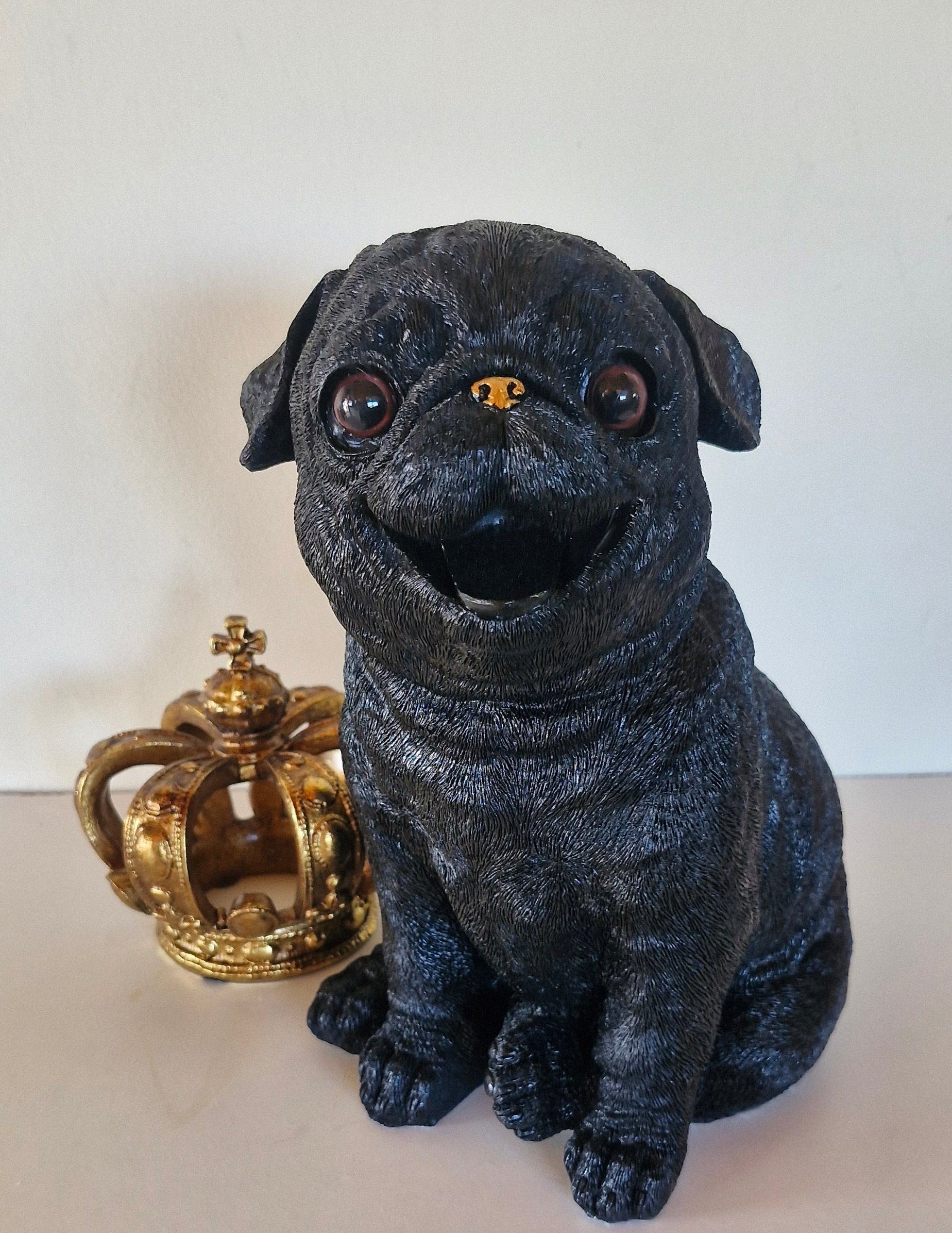 Objeto decorativo funcional em forma de cão com bandeja dourada que combina utilidade prática com charme escultural, trazendo personalidade e um sorriso ao seu espaço.