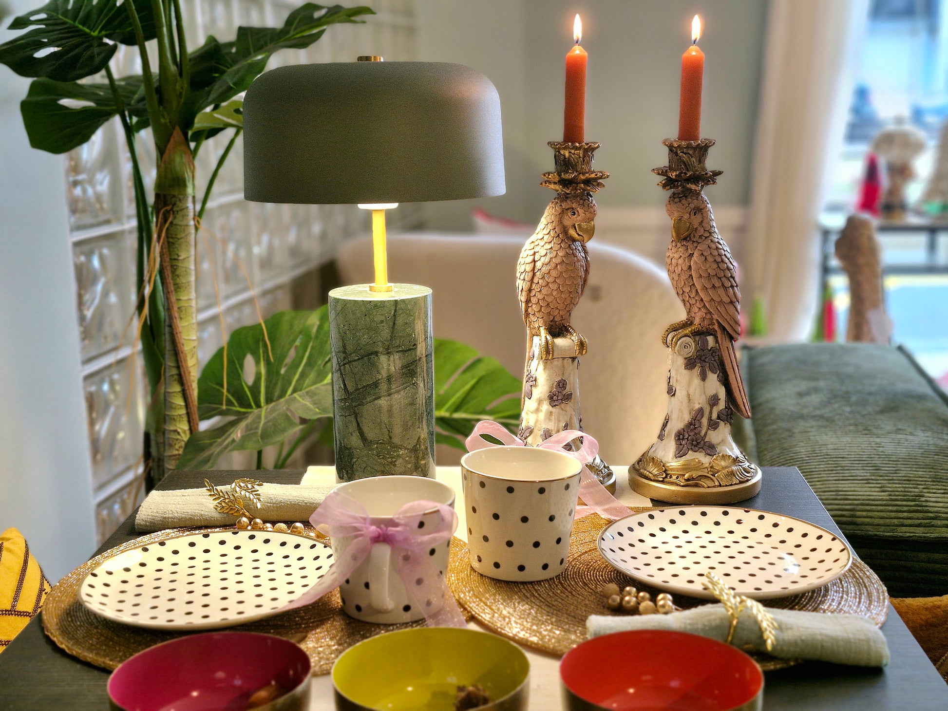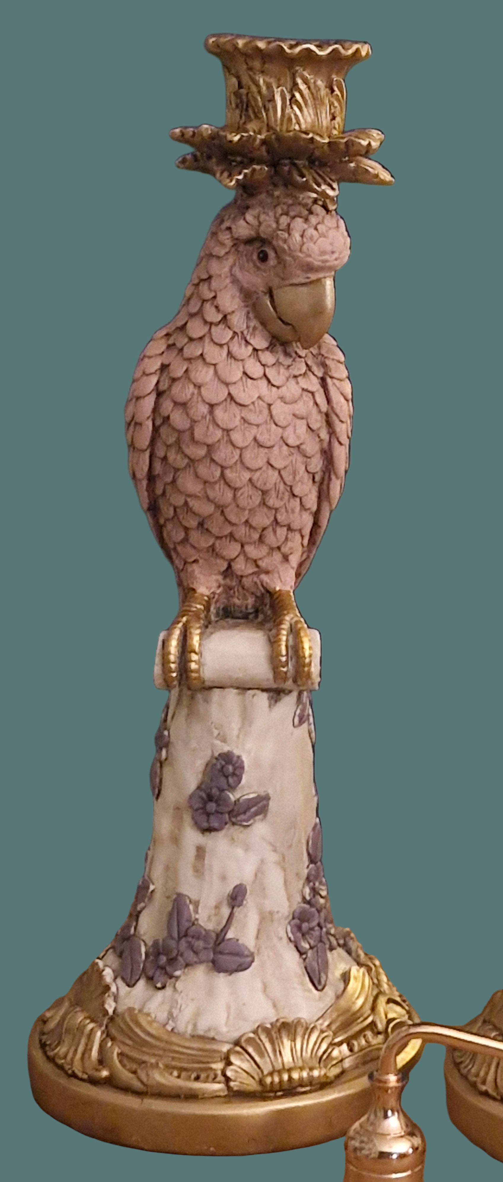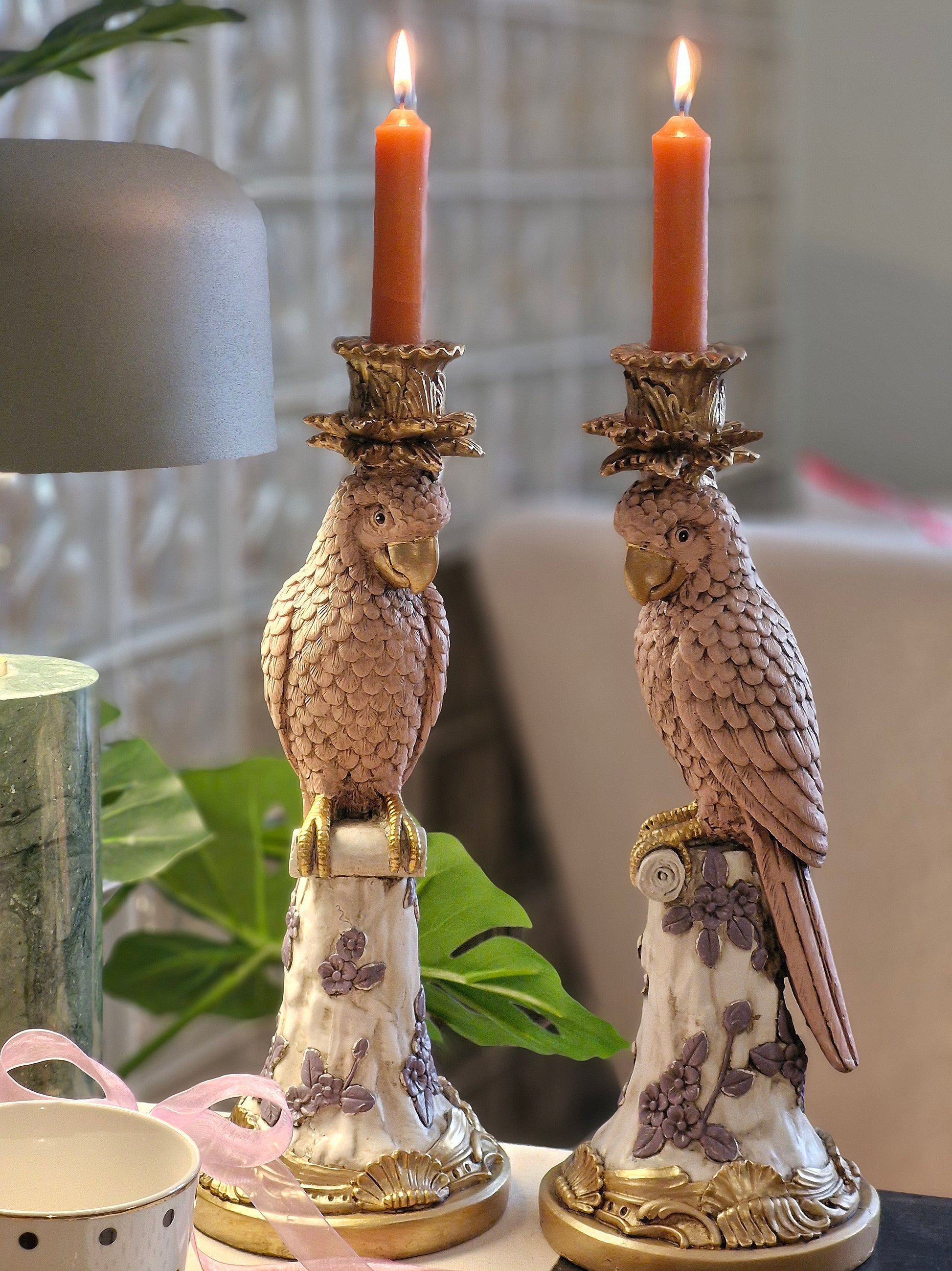 Com um charme tropical contemporâneo e aristocrático, este castiçal Pink Parrot é uma peça decorativa, pintada à mão, que combina exuberância com elegância.