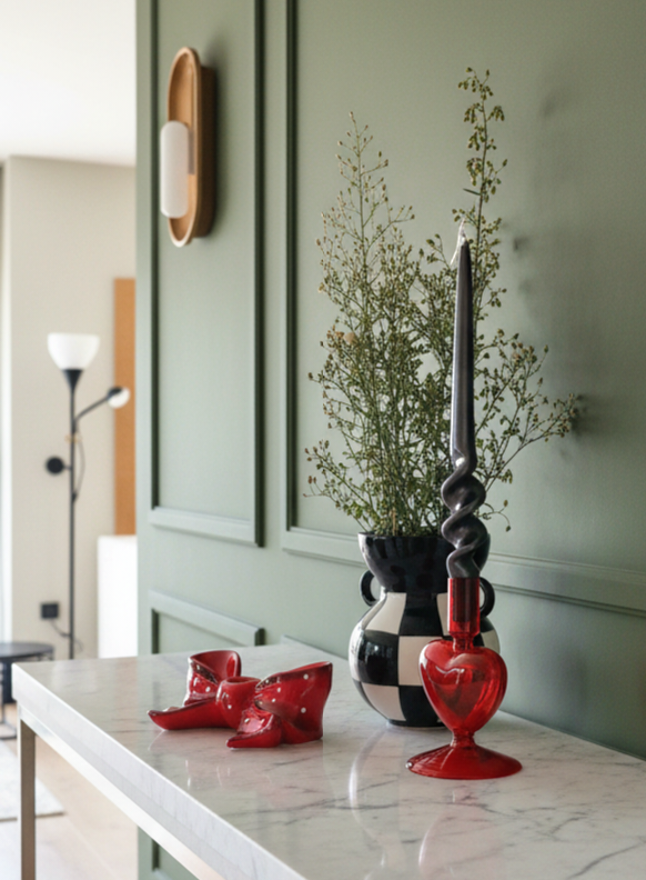 Castiçal em vidro em forma de coração vermelho profundo que combina romantismo elegante com design icónico, criando atmosferas especiais e memoráveis em qualquer ocasião.