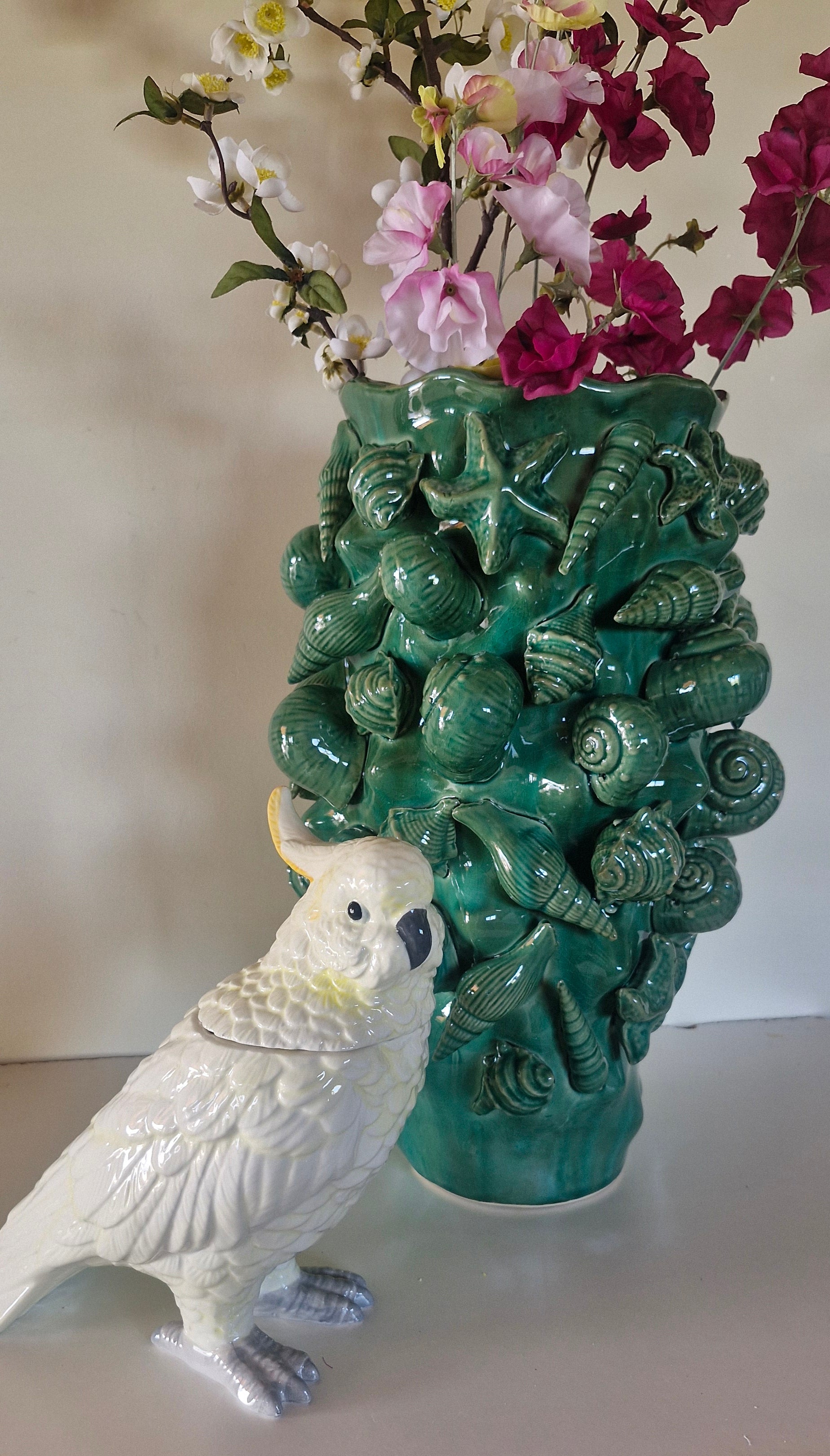 Escultura decorativa em cerâmica. Pequenas variações fazem parte do carácter único da peça.